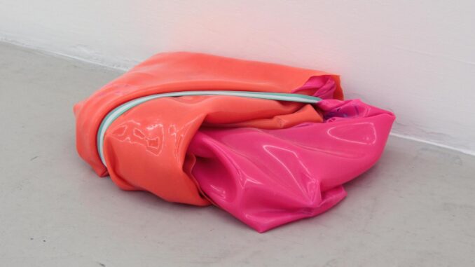 Mora se siente integrante de una generación de escultores que comparten un trabajo sobre lo maleable y lo masticable, según él mismo relata, así como una voluntad de experimentar el tránsito de la materia. Sus hatillos de colores altamente saturados, en turquesas, rosas y flúor, con capas de pintura craquelada a modo de armazón informe, se apilan o se distribuyen solitarios por la sala como esculturas de bulto redondo que se pueden rodear, y así poder apreciar todas sus perspectivas. Lo pudimos ver en una magnífica exposición de media carrera en 2022 en la sala Alcalá 31 de Madrid.