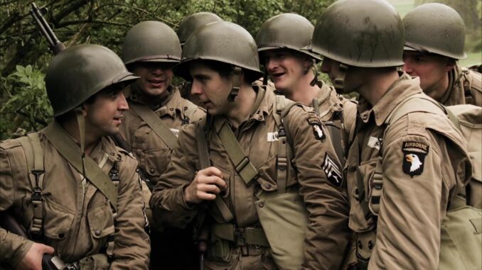 Hermanos de sangre (Band of Brothers), una miniserie de diez capítulos producida por Steven Spielberg y Tom Hanks que se estrenó en 2001, finaliza con los testimonios de varios excombatientes de la Compañía Easy del 506.º Regimiento de Infantería de Paracaidistas de la 101.ª División Aerotransportada del Ejército de los Estados Unidos, un grupo de elite que participó en el Desembarco de Normandía, combatió en la fallida Operación Market Garden, luchó en la batalla de las Ardenas, liberó campos de exterminio y ocupó el Nido del Águila de Hitler.