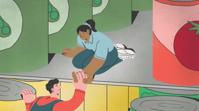 They both looked over the shelves in the pantry, discussing what they might need to cook dinner. Waldron grabbed a paper bag filled with ingredients for a creamy chickpea casserole, and Garland offered a not-so-subtle nudge: “You can learn to cook more things than ramen.”