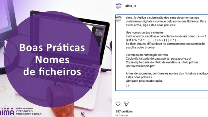 “Speed up the submission of your documents on digital platforms – start with the file name. To avoid errors, follow these good practices”, highlights AIMA. The guidelines are as follows: