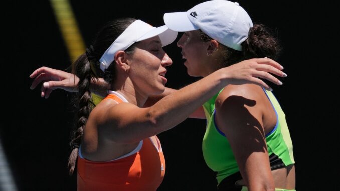 MELBOURNE, Australia (AP) — Buffalo’s Jessica Pegula was knocking podcast buddy and defending champion Madison Keys from the Australian Open on Monday to set up a quarter-final against Amanda Anisima, another all-American matchup.