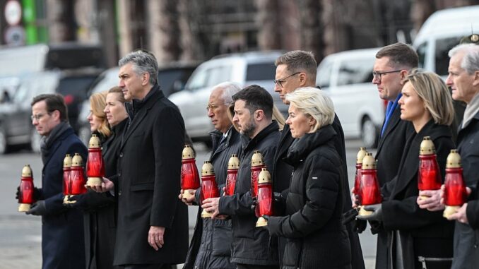 There was neither unanimity nor the presence of leaders from Europe’s largest countries at the commemoration of the 4th anniversary of the Russian invasion, but the message of support remains. Zelensky asks the EU for an accession date.