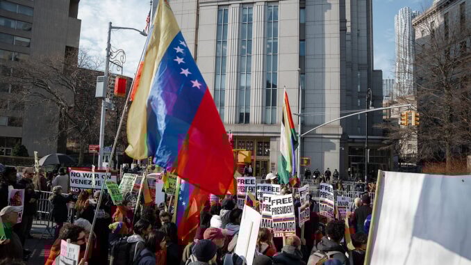 Maduro supporters and critics outside the courthouse in New York.EPA/OLGA FEDOROVA