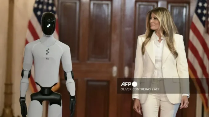 In place of her husband, President Donald Trump, the android “Figure 3” walked at her side at the opening of the global coalition summit “Shaping the Future Together.”
