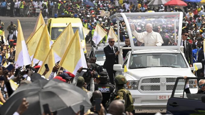 An hour before the start of the liturgy, the large field in front of the Japoma sports stadium It was packed with people singing and dancing while an announcer shouted “We have the Pope!” (“We have a dad!”). The Latin phrase is used to announce the election of a new pontiff, although on this occasion it joyfully announced the arrival of Pope Leo XIV to the venue. The crowd cheered when the holy father appeared in his open-sided popemobile, with groups of young people running alongside him trying to keep up, as he circled around the crowd. Some spent the night on the ground, fighting mosquitoes, to have room for the late morning Mass, but said they were willing to make the sacrifice for the pontiff.