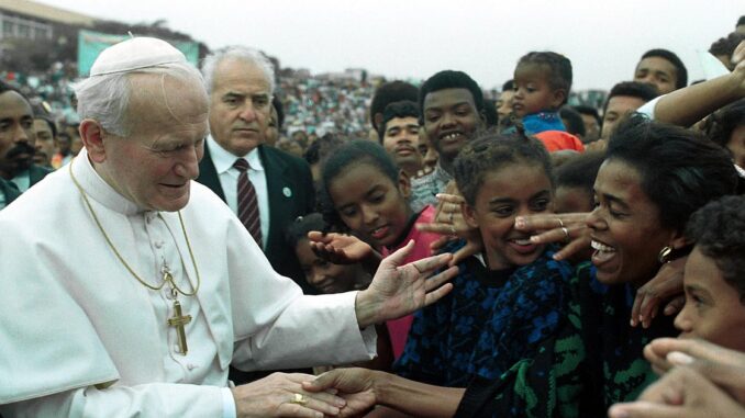The DN report followed the pope’s visit to the hut of a peasant couple and their eight children in Banzacongo, as it was then written, or M’banza Congo, in the province of Zaire. The pope offered an envelope with 500 dollars to the “moved” father, while the children, with amazed eyes and almost unable to speak, overwhelmed with emotion”, responded, “stammering”, to Wojtyla’s questions.