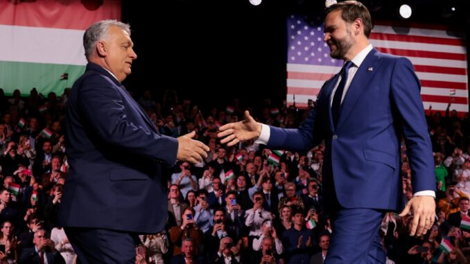 In an unprecedented gesture, the American vice president participated in a rally of the ultranationalist president, in which he called to vote for him and praised his anti-immigration policy and his confrontation with “the bureaucrats” of Brussels.