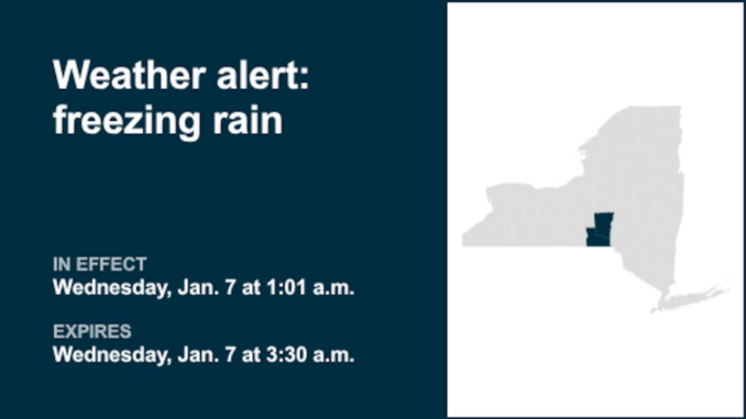 An updated advisory was issued by the National Weather Service at 1:01 a.m. Wednesday for freezing rain until 3:30 a.m. for Chenango and Broome counties.
