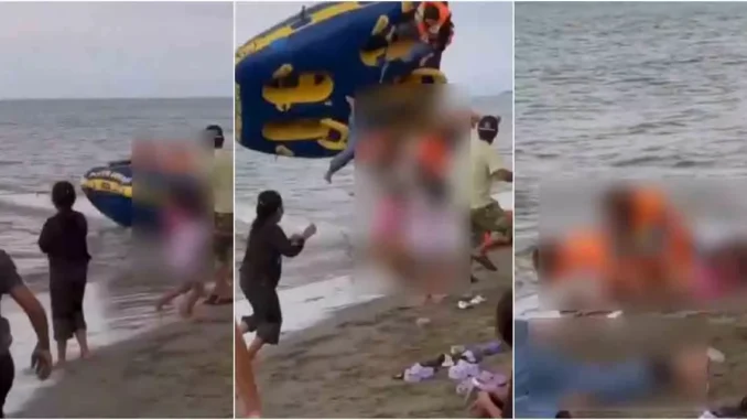 🇮🇩 | INDONESIA: A video captured the moment when a recreational boat towing an inflatable approached at high speed and too close to the shore at Pantai Harapan Ammani beach, in Pinrang, a few days ago. The maneuver caused the inflatable to capsize, throwing its… pic.twitter.com/04ExFb6xVM