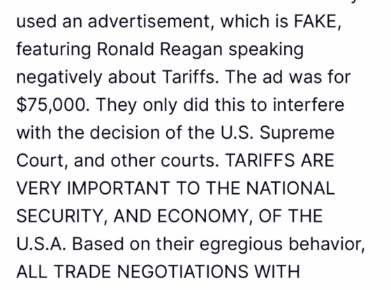 WASHINGTON (AP) — The president Donald Trump reported today on social networks that it will end “all trade negotiations” with Canada due to the recent broadcast of television ads in which they demonstrate against the United States tariffs, which it described as a “atrocious behavior” in order to influence the decisions of US federal courts.