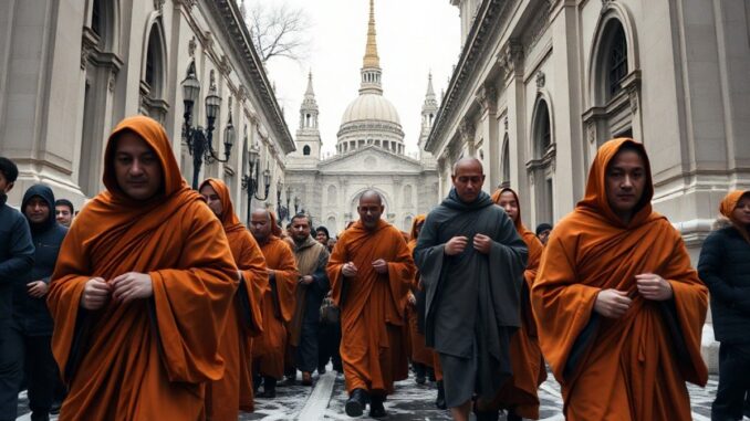 It was a day that some locals described as once in a lifetime when a group of Buddhist monks arrived barefoot on the steps of the National Cathedral while there was still snow on the ground.