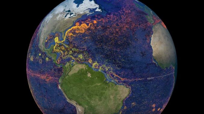 Visualization showing the western boundary currents that form part of the Atlantic South Overturning Circulation