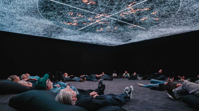 While visiting his new job data universe [n°1]which aims to “map the full spectrum of nature’s data”, I took a break as my field of vision was enveloped by a vast LED screen that came to life with strobe flashes. However, I soon settled into the pace of this roller coaster that moved around the Earth, inside our minds and into space, all perfectly synchronized to the haunting music.