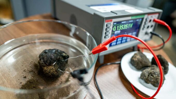 The team hypothesized that the layers of metals in the nodes generate an electric current that can split seawater into hydrogen and oxygen. They measured up to 0.95 volts of electricity on the surface of the nodes, which is slightly less than an AA battery.